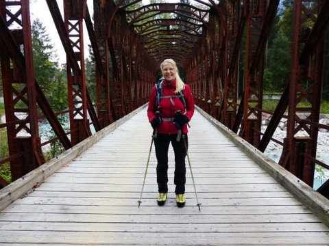 Začeli smo pri starem železniškem mostu, po katerem sedaj teče kolesarska
