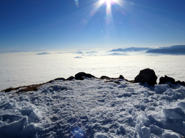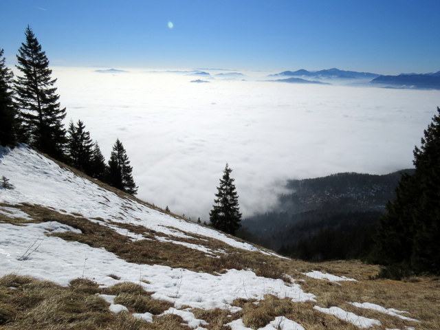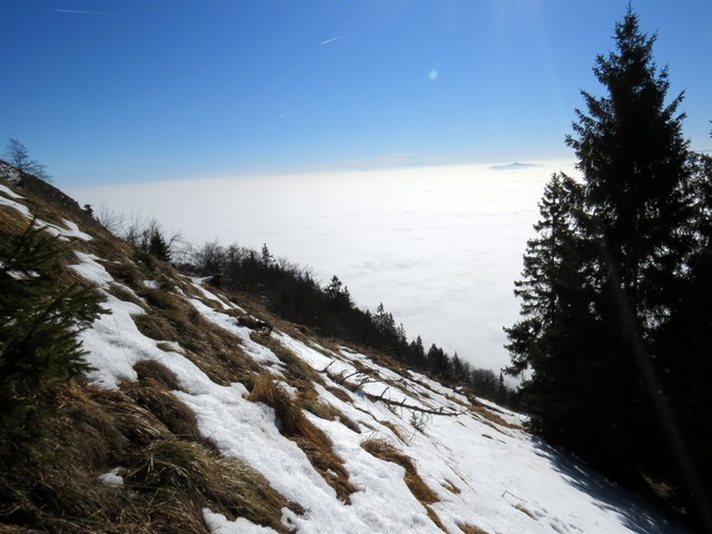KRIŠKA GORA jan 29, Iz Golnika čez Gozd na Tolsti vrh, Dom na Kriški gori, Gozd, Golnik. Sneg vseh možnih stanjih, najboljši pa je led pod listjem.