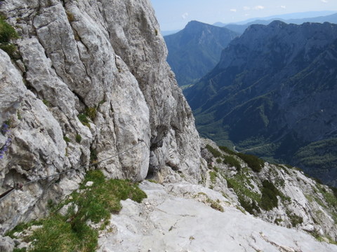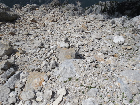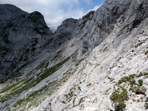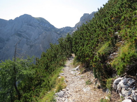 ruševje, kar pove, da na pot že dolgo ni zašel markacist. Z vrha v dolino