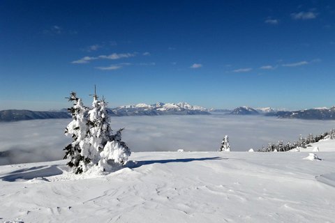 začetku vzpona nekaj megle in nizke oblačnosti,proti vrhu pa sonce in modro