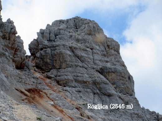 »skok« na bližnjo Zgornjo Dolkovo glavo (2350 m?), nato pa po meliščih in