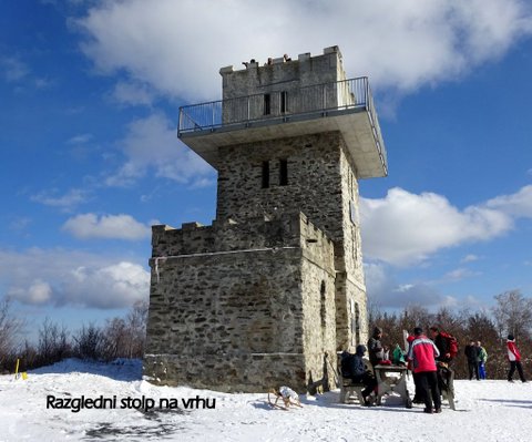 m), kjer stoji 90 m TV oddajnik in leseni križ. Vrh je dobil ime po