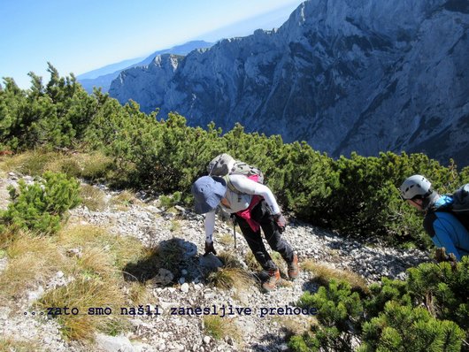 odcepi nemarkirana in slabo vidna lovska pot. S pomočjo klinov in