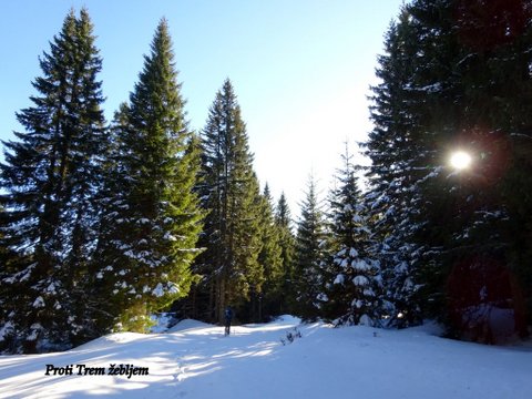 Mizni vrh (1340 m), od koder smo po "deviškem" snegu nadaljevali pot