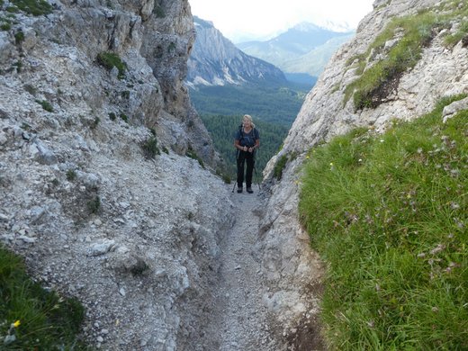 Sestop iz gore Col Rosa pa je speljan po lažji, a strmi poti na drugo