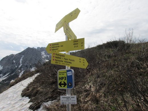 Sattel (1783 m) smo izbrali uhojeno avstrijsko pot 403. Nad sedlom Kordin