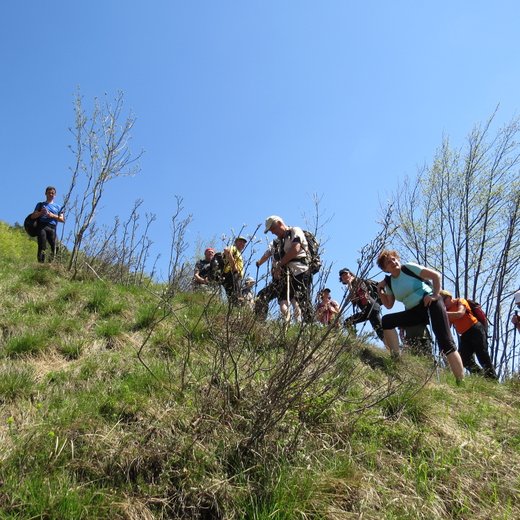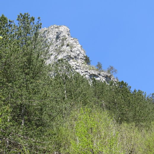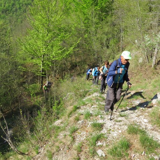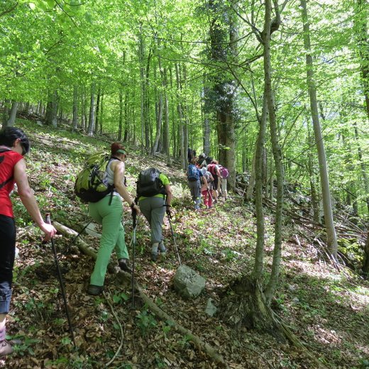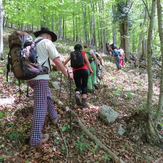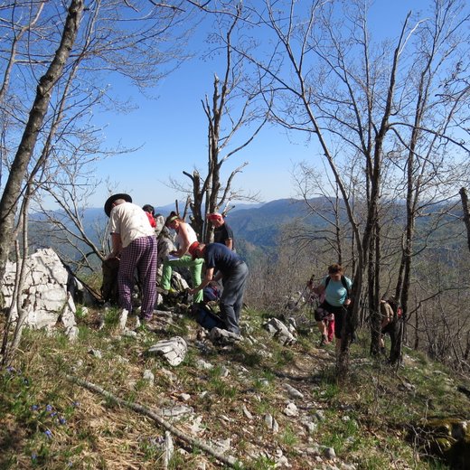 LOŠKA STENA apr 21, s celjskimi planinci. Najprej na odkritje skalaškega obeležja pod Tonglovim stebrom nad Srobotnikom (med Petrino in Osilnico), nato brezpotni vzpon na Loško steno in sestop v Bezgovico.