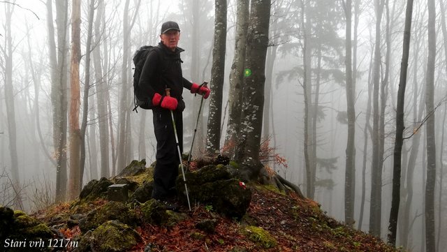 Iz Zaprevala v Selški dolini ob žičnici do Koče na Starem vrhu, na Stari vrh, Mladi vrh in nazaj po isti poti. Sonca nisva uzrla.