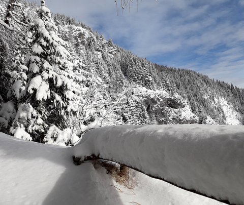 celem snegu (pršiču)-nadaljujem do mesarke lope in do ceste.Za sestop sem se