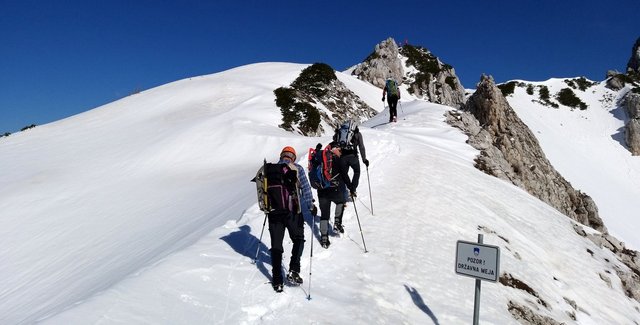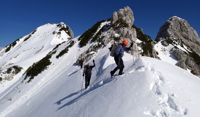 vse več.Uporaba krpelj in derez je prišla še kako prav.Vreme in razgledi pa