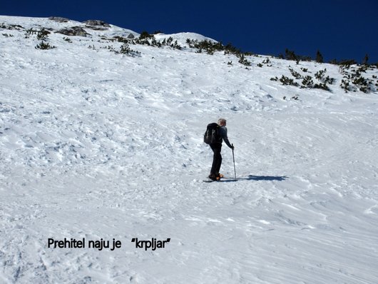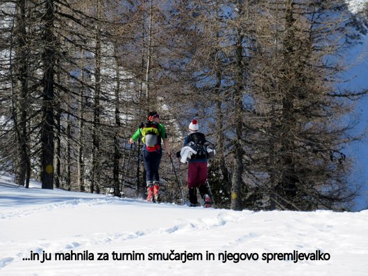 smučišču oziroma po zahtevni markirani poti se "prebijeva" na Kniepsovo