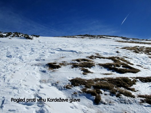 sedlo, od koder sam nadaljujem na Kordeževo glavo (2125 m). Ob povratku