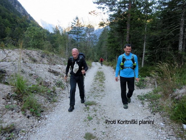 Turo smo pričeli v Loški Koritnici (730 m) in se po markirani poti čez Koritniško planino in po zavarovani poti preko strme skalne stopnje, gozdnem hrbtu ter melišču, povzpeli, najprej na sedlo Čez Brežič (1980 m), nato pa po strmi nemarkirani poti še na vrh Plešivca. Po počitku nadaljujemo po ostrem in izpostavljenem skalnem grebenu proti Bavhu (2186 m), vendar pa zaradi zahtevnosti poti, prekinemo prečenje in se vrnemo po grebenu ter sestopimo na sedlo Čez Brežič.