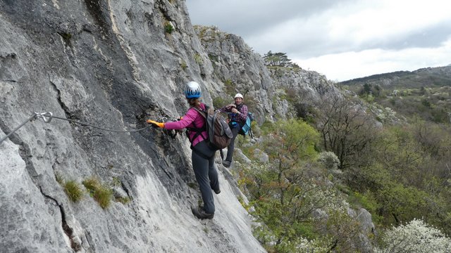 Najprej smo preplezali vse ferrate, moški del še eno prosto smer III.