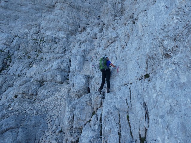 Začetek ture na planini Pecol. Malo pred vstopom v skale via normale na