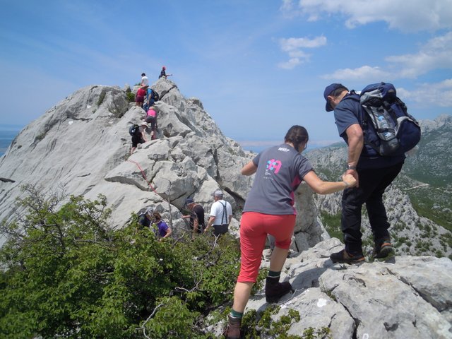 Lep dan za vzpon na zahteven vrh, kjer so nam skrbni vodniki napeljali vrv,