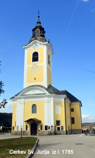 uprizarjali v Drami. Pred župno cerkvijo sta kipa dveh škofov iz različnih