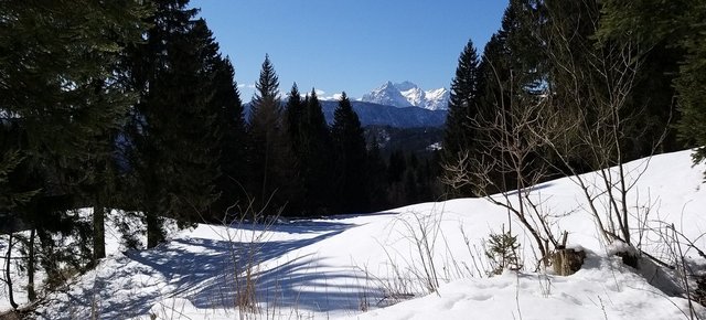 vremenu podali na turo.S planine pod Golico po zimski uhojeni poti do koče