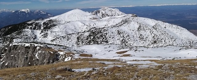 Knipsovo sedlo in po grbenu na Veliko glavo 2077m.Nadaljujem po celcu ob