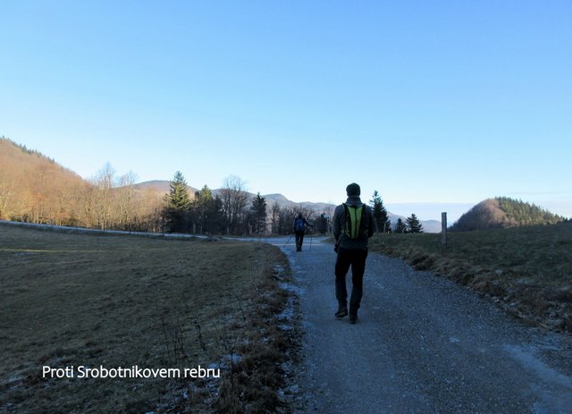 (ok. 450 m) smo se po gozdni cesti podali do zaselka Srobotno (ok. 650 m),