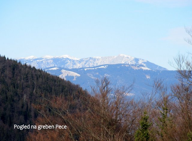 bližnjo okolico. Po grebenu nadaljujemo po nemarkirani poti na Pleš (1012