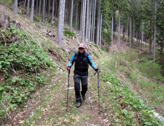 pobočju Konjskega vrha (1514 m) in to kar po brezpotju in gozdni vlaki,