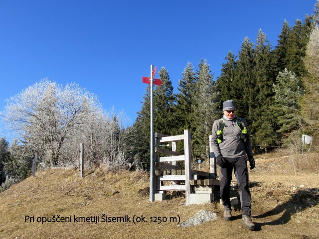 nato po strmi poti, mimo opuščene kmetije Šisernik (ok. 1250 m), na vrh