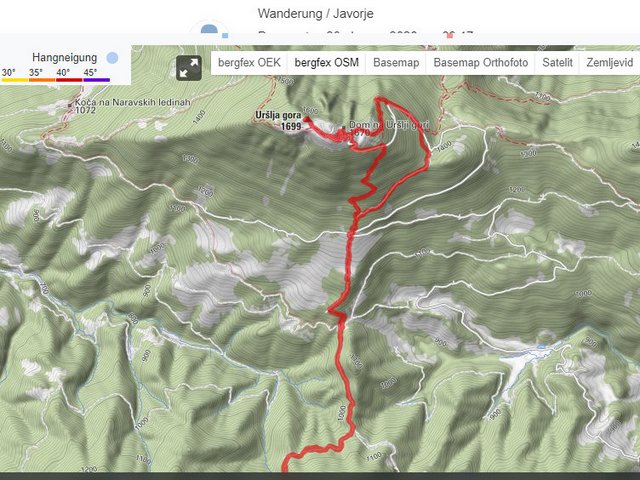 izhodišča. Hoje je bilo za pet ur; vzponov po poti se je nabralo za ok.