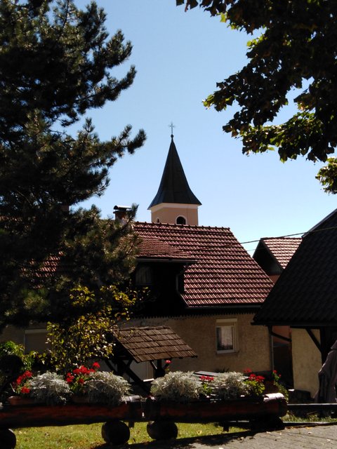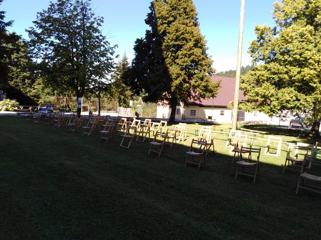 Na Svetini so se zbrali udeleženci Anzekovega pohoda (Laško-Svetina), godbeniki, verniki, krajani in likovniki, ki smo slikali na opeke v spomin na Almo Karlin.
