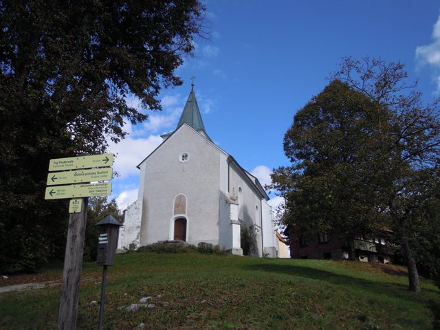 preko Starih svetih gor mimo kapelic, si z višine ogledati trg Podsredo in