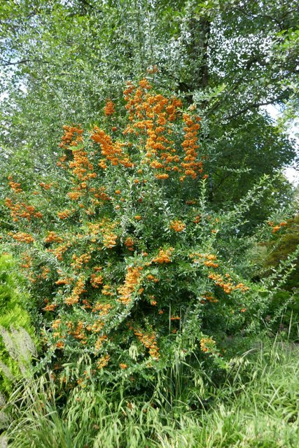 Cvetlic, okrasnega grmovja, pokošene trave, lepo visoko zrastlega drevja je