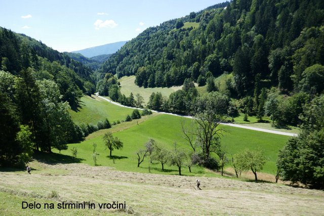 lahko le ročno kosijo in spravljajo posušeno seno domov. Proti vrhu se svet