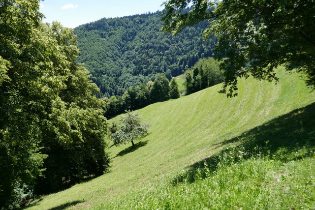 strma, v glavnem pokrita z gozdom, vmes pa so strme senožeti, kjer kmetje