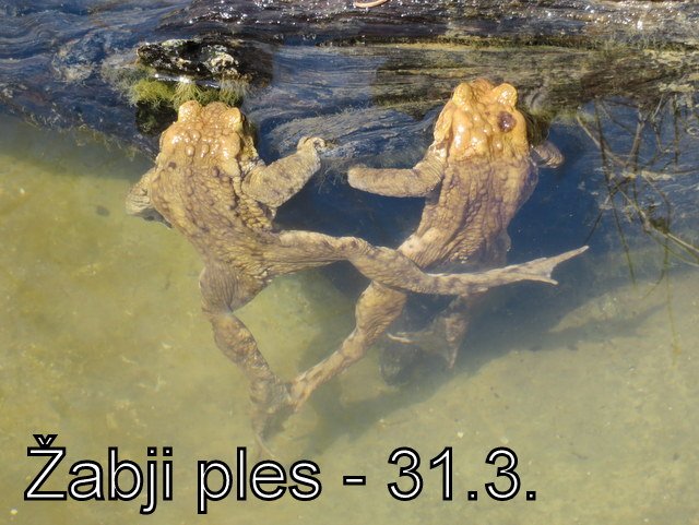 Konec marca so žabe napolnile bajer in se veselo družile. Tudi po policijski uri