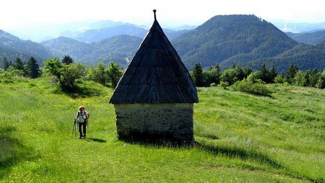 S sedla pod Kotnikovim vrhom, mimo Križana in Šišernikovega travnika skrenila s poti na rastišče avriklja, ki je žal že odcvetel in naravnost po divjini na vrh.