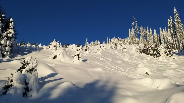 dolgo na poti proti koči na Loki pa že spet nas odnese v nedotaknjeno snežno