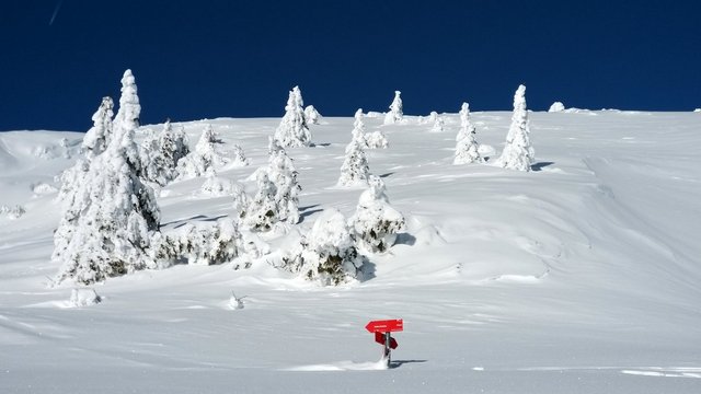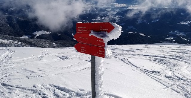 Na zasneženo Raduho tokrat od kmetije Radušnik.Na parkirišču nadanemo krplje