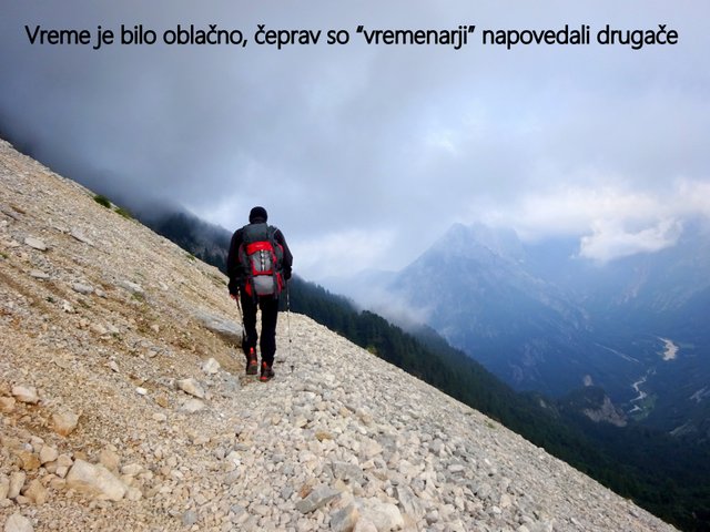 pihal pa je tudi kar močan veter. Sestop na izhodišče je potekal po "Slovenski