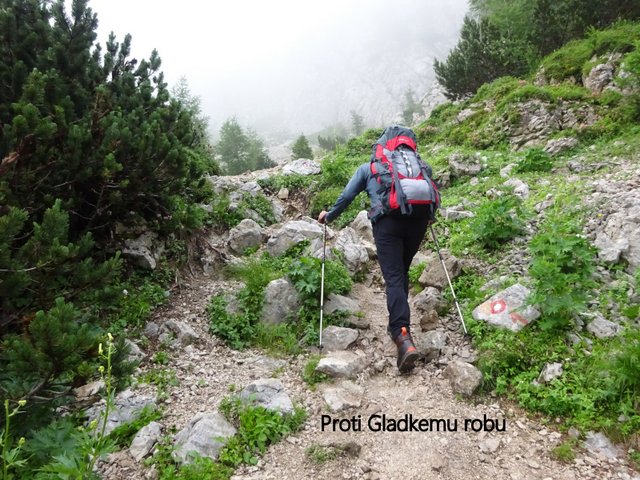 " poti čez južna pobočja. Hoje je bilo za dobrih šest ur; vzpona pa za ok. tisoč