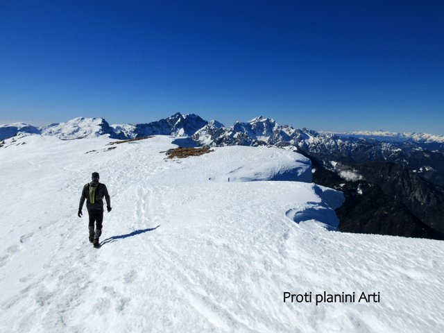 Raduhe proti planini Arti in se med potjo povzpela še na neizraziti vrh Male Rti