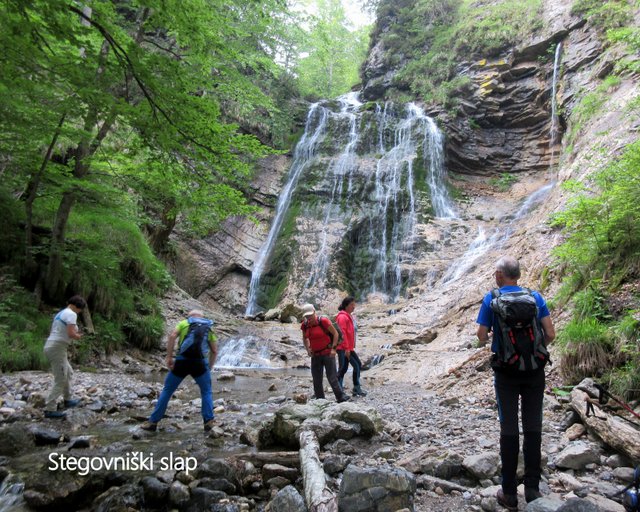 mimo slapa na Stegovniškem potoku, nato pa po gozdni cesti oziroma brezpotju,