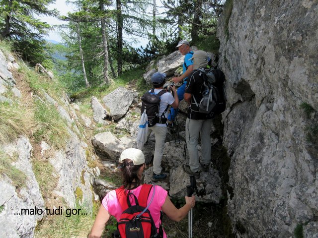 vodi zavarovana pot. Od tam smo se po strmem žrelu, zaraščenim z drevesi,