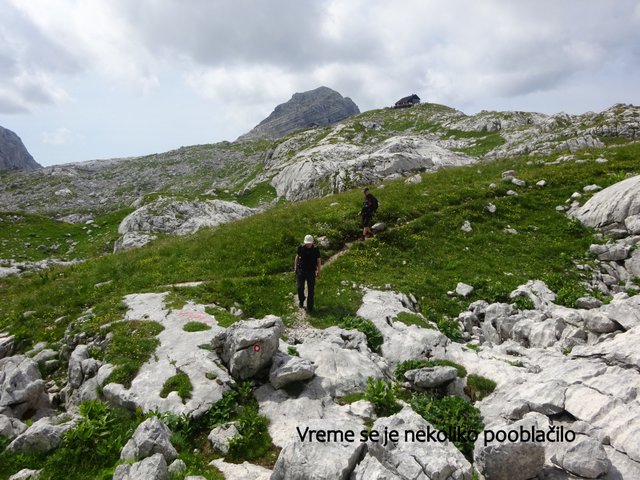 po poti vzpona do koče na Prehodavcih, kjer po kratkem postanku nadaljujemo