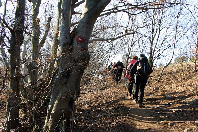 Iz Senožeč proti vrhu Vremščice, kjer smo kratek čas uživali v sončnem, pomladnem dnevu; nazaj pa proti Gabrčam, kjer nas je na parkirišču ob cesti "pobral naš" avtobus.