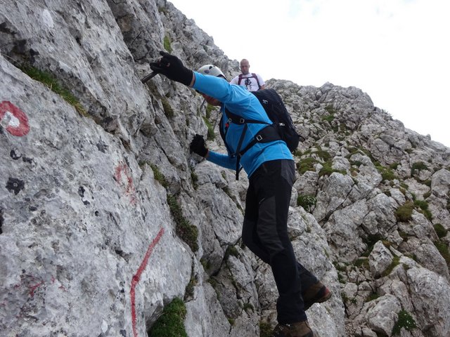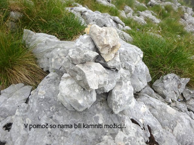 mogla izslediti, zato se odpraviva kar čez kraške pode Kalce na greben, oz. vrh