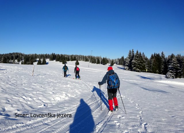 Lovrenškim jezerom. Pri Ostruščici (1492 m) krenemo po "zgornji" - razgledni