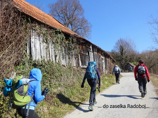 sledilo nadaljevanje skozi zaselek Radoboj na Plat (470 m - KT - 3). Po krajšem