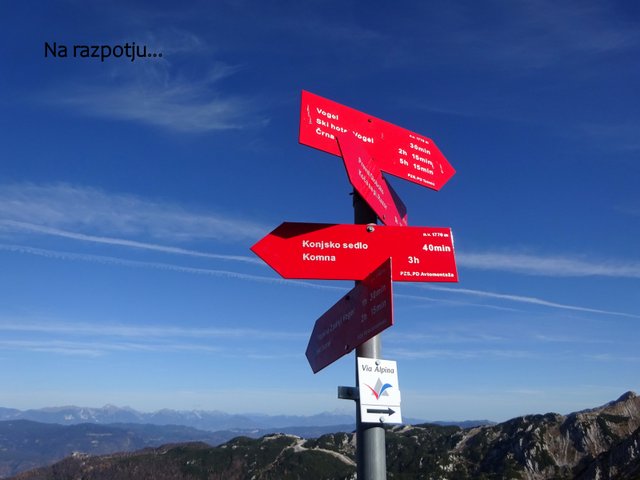 grebenu nadaljujemo na razgledni Vogel (1922 m), od tam pa sestopimo na