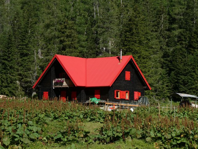 planino s stavbo z rdečo streho, ki jo z naše poti velikokrat videvamo.