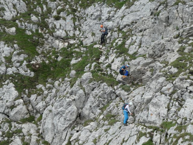 mokrega od nočnega naliva. Z vrha sestopamo po Alta Via CAI Pontebba, katera je